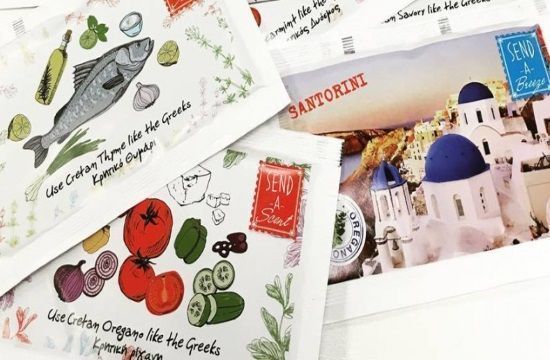 “Send-A-Scent” is a “clever” postcard containing herbs and aromatic plants of Greece, giving the unique opportunity to the visitor to “capture” the scents and aromas of the Greek land and to travel them wherever he wishes. This way, the classic postcards that remind the traveler of the places he visited, a “thought” to friends and loved ones, becomes vivid and alive, carrying also the aromas of the place, enriching the feelings….