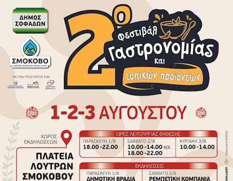 With the theme of fasting and monastic cuisine, the Gastronomy and Local Products Festival is scheduled to take place at Loutra Smokovo from August 1st to 3rd, showcasing the nutritional richness and cultural identity of the Sofades region. This year’s event focuses on the connection between agri-food and health and tourism development, highlighting the uniqueness of local products and the importance of returning to traditional recipes.