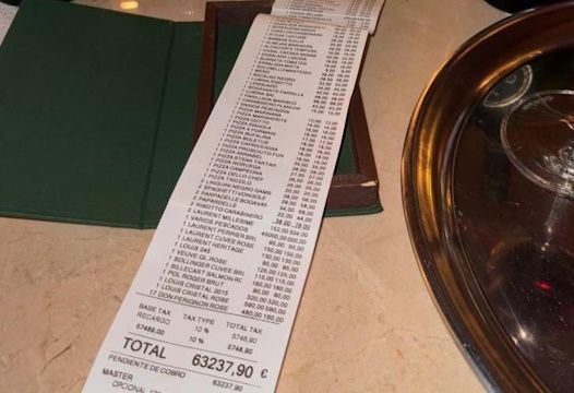 A bill that topped €63,000 in a single night has caused a stir on social media and become the talk of the town in Mallorca. The restaurant, located on the Palmanova beachfront, posted the receipt on Instagram, challenging its followers with the tagline: “Whose bill is this? Tag them – we want to talk…”