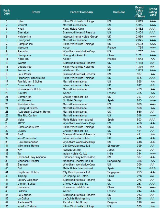 Brand Finance Chief Executive David Haigh commented, “As disruptors such as Airbnb create an ever more challenging environment for traditional operators, a new wave of investment from the likes of Anbang Insurance Groups is to be welcomed, however frustrating it may seem. Brand investment in particular is key in this fast-changing environment.”