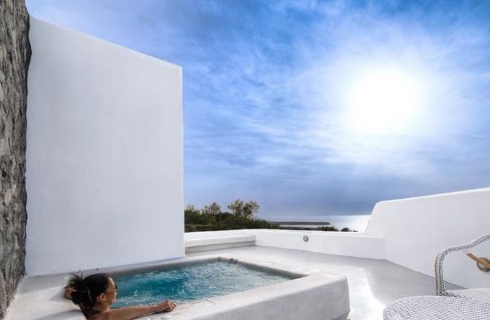 The article describes Santo Maris Oia as follows and accompanies the description with the following hotel’s photos: