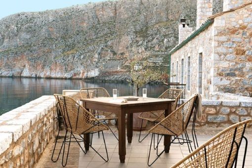Finding Kyrimai is tricky, lying as it does at the end of a tiny road that winds down one of Peloponnese’s long fingers, past miniature Byzantine churches, gorges and wandering goats. But it is well worth the drive. A converted warehouse dating back to the 1870s, the hotel sits as close to the water’s edge as is possible, with a central tower looking out to sea. The 22 bedrooms, all different, are spread out, some in the tower, others off an interior courtyard or clustered around a spiral stone staircase. Inside, all is silent and pared-back, with wooden beams, exposed stonework, and crisp grey and white linen on the beds. In the mornings, heavy shutters open to reveal a blast of cerulean sky and the rhythmic slap of the sea against the mossy green walls beneath. Terraces of honey-coloured stone are warmed by the sun and toasty underfoot. Breakfast is a feast of just-baked pastries, local honey and creamy yogurt, served beneath a shady pergola by the swimming pool. This is also the venue for lunch, with plates of just-fried calamari and smoked aubergine salad washed down with Asirtiko wine from nearby Monemvasia. The surrounding countryside has classical ruins and antiquities to explore, but no one will bat an eyelid if you spend the day by the pool, stirring only to cool down by leaping from the jetty into the sea. NEXT