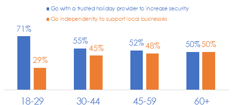 The research also revealed that younger travellers are more tied to trusted travel brands than the older generation. Older travellers are more likely to go on holiday independently to support local businesses.