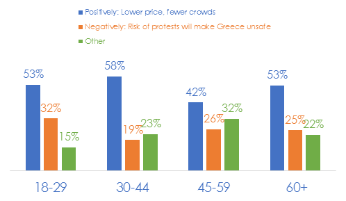 Over 50% of respondents feel that if Greece exits the EU, it would have a positive impact on holiday prices. Despite the economic situation, 66% of those surveyed perceive Greece as a safe holiday destination.