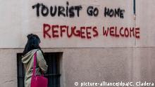 “Tourists go home. Refugees welcome” is just one of the slogans to have appeared this week daubed on the walls of the historic centre of Palma, the capital of the holiday island of Mallorca.