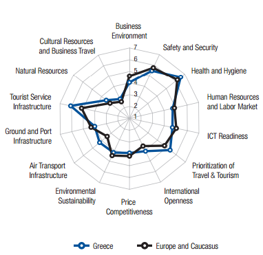 Greece ranked 31st in the world ranking of the Global Competitiveness Index in Tourism among 141 countries, by achieving an overall competitiveness score of 4.36 on the scale from 1 to 7.