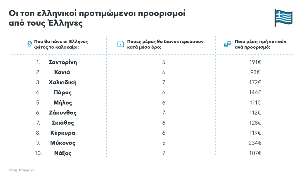 According to a survey by online travel site Trivago, Serbs, Romanians and Italians are the most likely to visit Greece this summer. British come in fourth, while Bulgarians are also high in terms of choosing Greece as their holiday destination. The island of Thasos appears to be among the top three picks for Serbs, Romanians and Bulgarians, while the Italians and British prefer Santorini and Mykonos. Germans, Swedes, Hungarians, Danes and Russians make up the next 5 nationalities that are expected to choose Greece for their summer vacation in 2017, with Crete being in their top 3 picks. As far as Greeks and their destination preferences for 2017 are concerned, the survey showed that Santorini, Chania and Chalkidiki were at the top of their list. Greeks traditionally go on holidays between August 7 and 20, while the average nights of stay at hotels is estimated between 5 and 7 days depending on the destination.