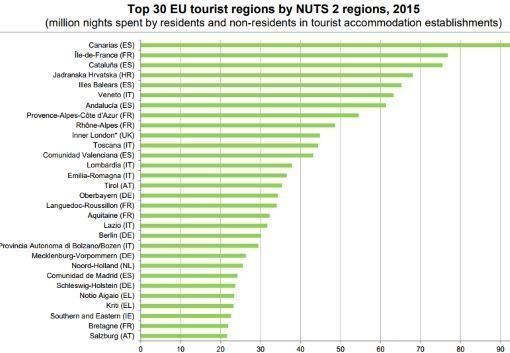 Crete and Southern Aegean among top tourism destinations in the EU, according to Eurostat which reports the following: