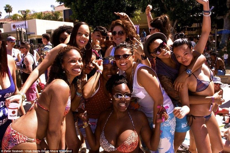 Ladies as far as the eye can see in the California desert are letting loose, drinking, singing, kissing and showing affection to each other. If you are wondering about the men, there are those who cater for the party and some male friends of the women participating.