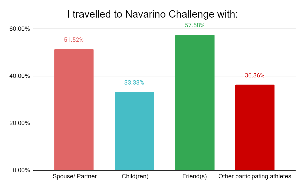 The socialization component is evident, as 82% joined this event accompanied by their partners, friends, family, and/or other athletes.
