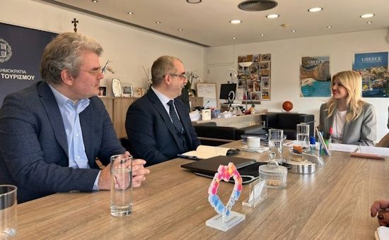 Ahead of the Euroleague Coaches Conference 2025, Deputy Minister of Tourism Elena Rapti met, at the Ministry of Tourism, with the Director of the Euroleague Coaches Association Goran Sasic, and the press officer of the association Aris Barkas.