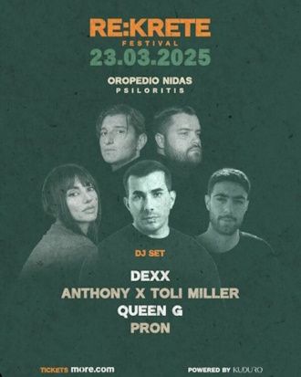 On Sunday, March 23, 2025, at the Nida Plateau, the RE:KRETE Festival is an unparalleled musical experience where top artists from Greece meet in a fusion festival – a celebration unlike any other.