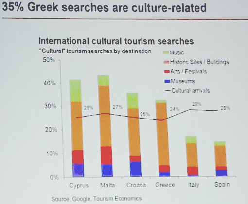 Cultural content is a key element in researching potential travelers when they are planning a trip. Searches related to tourism have increased by 45% since 2010. Specifically in Greece, 35% of tourist searches are related to cultural attractions, music, arts, festivals, historical monuments, archaeological sites and museums.