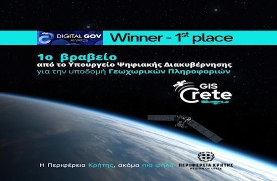 The top distinction in the category “Best Implemented Idea” was won by the Region of Crete at the Ministry of Digital Governance Awards 2025, for the innovative Geospatial Information Infrastructure GIS Crete. This is the first integrated application of this kind in a Greek Region, which combines primary data from services with satellite information from the European Copernicus program, while utilizing modern open data practices.