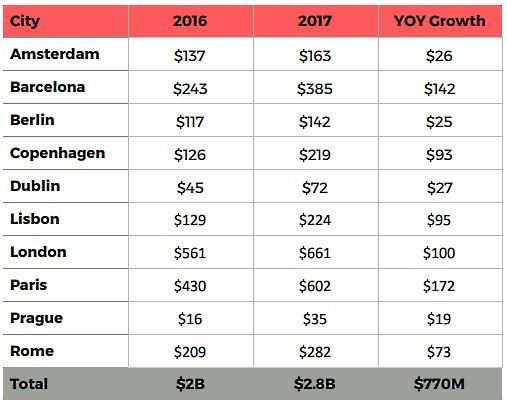 The chart below shows what Airbnb guests spent annually in restaurants in major European cities …