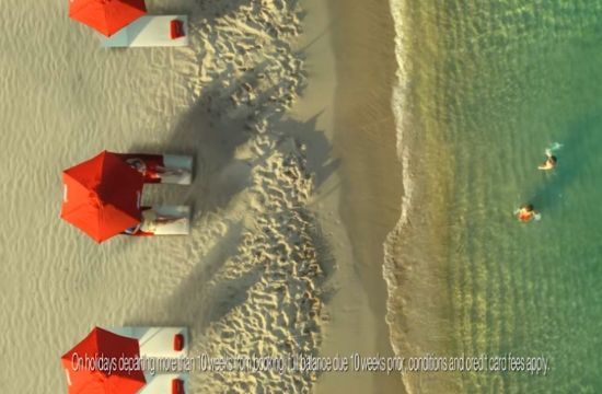 The launch advert for the multi-million pound turn-of-year campaign features a mum and dad relaxing on a beach watching their children play in the sea, to coincide with Jet2holidays’ ‘kids go free’ message.