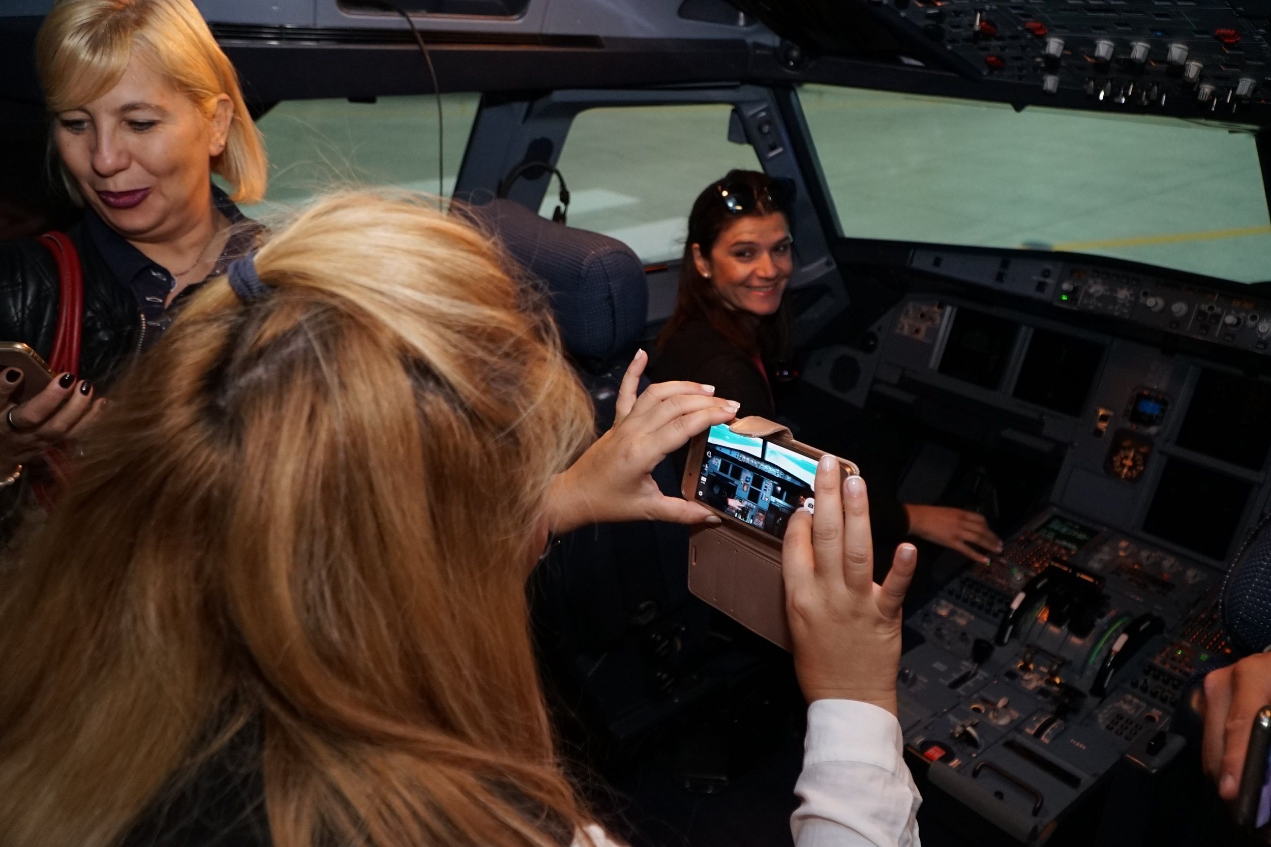 Inside the cockpit of one of ultra modern Turkish Airlines Flight Simulators