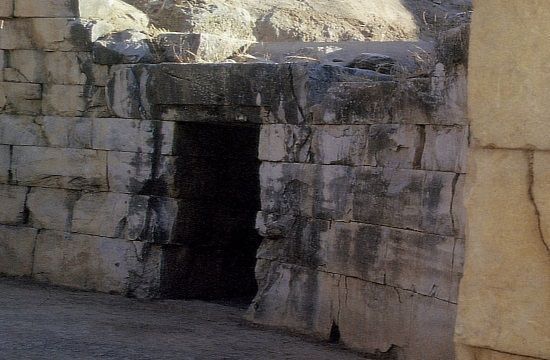 There is evidence that this roof began to collapse very early after construction, possibly even during the Mycenean era, giving the tomb a cave-like aspect and a total height of 6.5 metres. The collapse disturbed the position of the body and objects inside but then covered and protected the tomb from later interference.