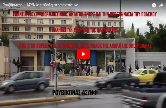 Members of the self-proclaimed anarchist group Rouvikonas stormed into Greece’s National Defence ministry on Friday and threw leaflets expressing support for the Palestinian people and condemning imperialists.