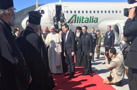 Pope Francis has arrived in Lesvos, where he was greeted by Prime Minister Alexis Tsipras, the Orthodox Patriarch Bartholomew, and the Archbishop of Athens Ieronymos. They are set for what is being called an “historic” visit, since it is the first that the two Church leaders are making together.