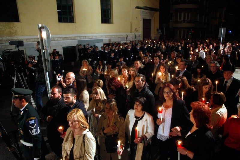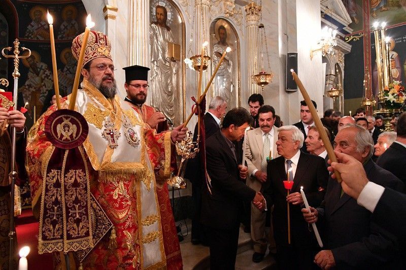 In Messolongi, in Central Greece, large crowds of all ages gathered at the metropolitan Temple of Agios Spyridon to sing the message of the resurrection of the God-man.