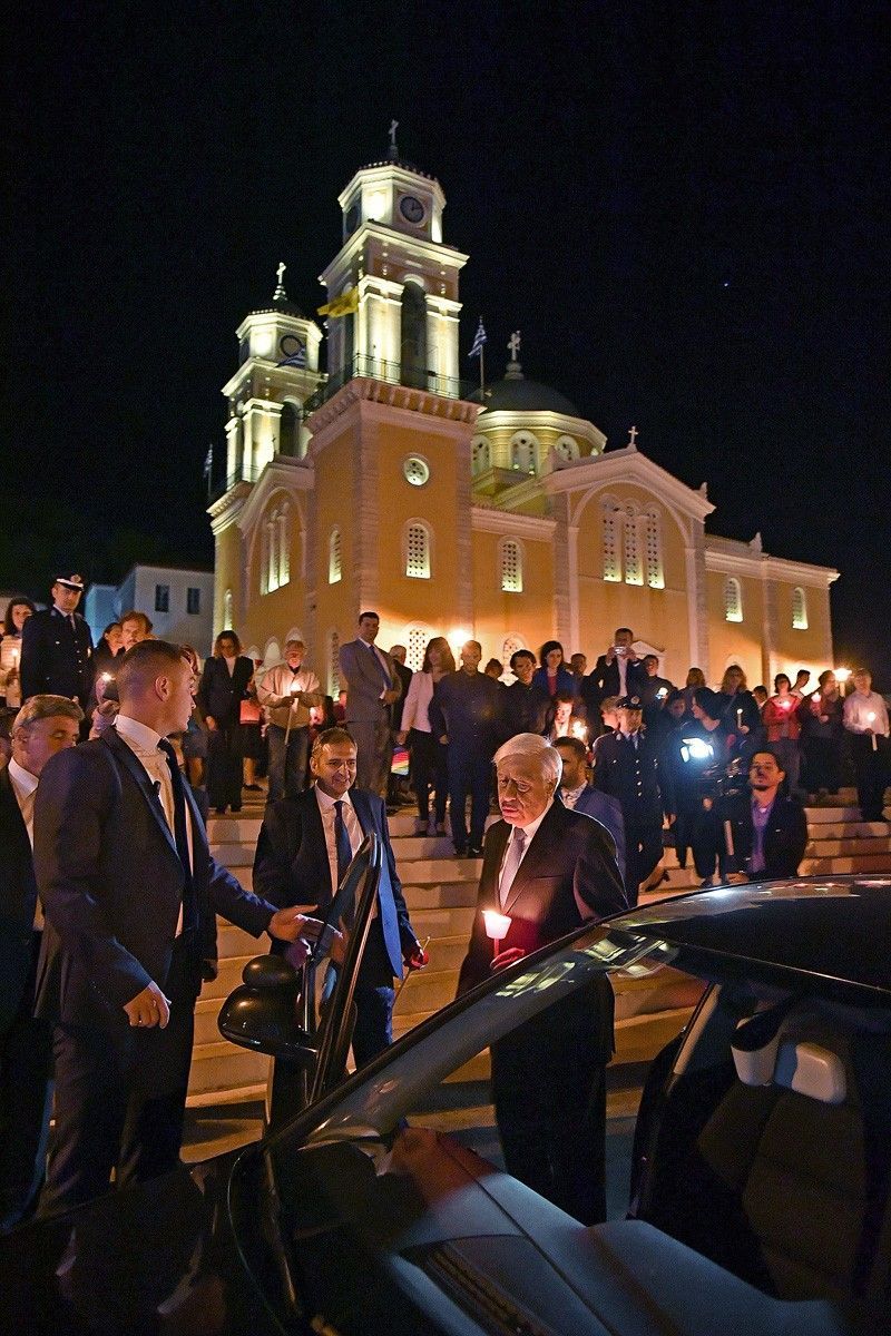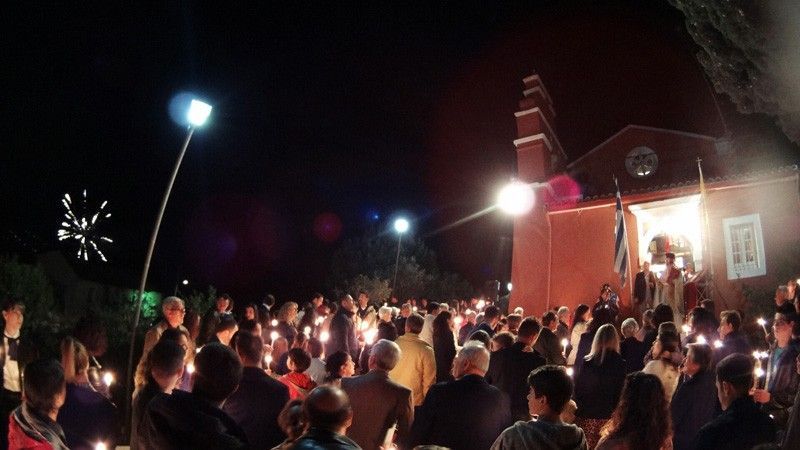 The images were similar on the island of Paros, where people flocked the church of Agios Georgios to hear the joyous Easter message of life. Night became day when the words ‘Christ has Risen’ were heard by the priests, with many firecrackers creating an atmosphere of jubilation.