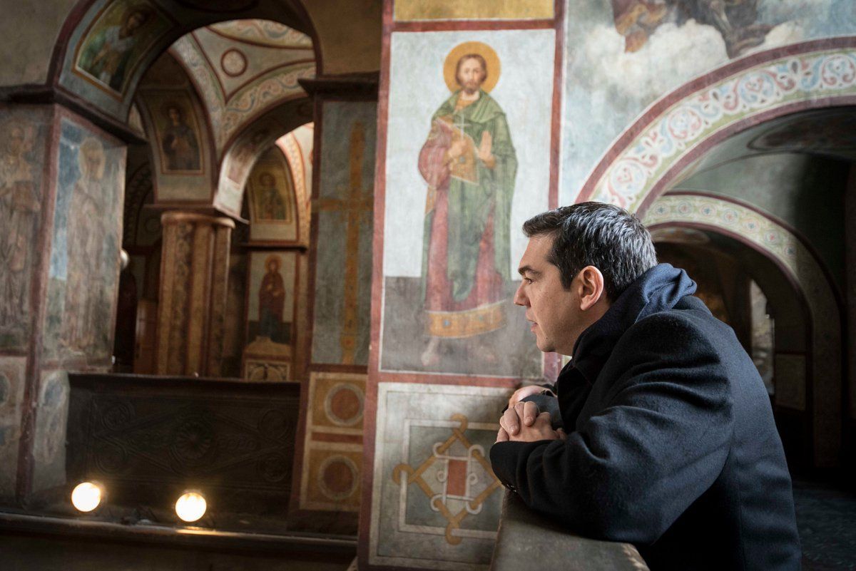 During his official visit to Ukraine, Greek PM Alexis Tsipras received a guided tour of the historic Christian Orthodox Church of St. Sophia. Built in the 11th century AD by many groups of craftsmen, including Greeks, the cathedral’s walls are adorned with beautiful frescoes and magnificent mosaics in the Orthodox tradition, many of which had Greek inscriptions.