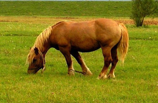 The Skyrian horses are friendly, social, robust, intelligent animals; they are particularly friendly breed with a maximum height is 116 cm. and body-type is similar to that of the large horse. The head is very handsome, the mane being long and richly coloured, usually in a hue darker than skin colour. A special characteristic are the hairs on the fetlocks, the so-called feathers. Colour is usually a brown-red or chestnut hue, sometimes white or grey-brown, rarely blond.