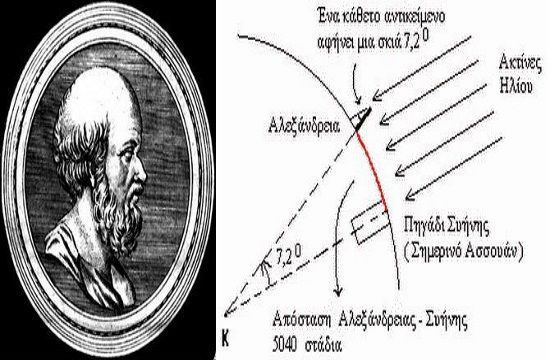 Eratosthenes, who was the chief of the Library at Alexandria, had heard that in Syene; a city south of Alexandria, no vertical shadows were cast at noon on the summer solstice. The sun was directly overhead. He wondered if that happened in Alexandria as well.