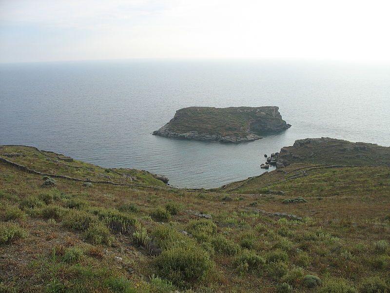View from Vryokastro to the ancient harbour and the formerly connected islet. Photo Source: Wikimedia Commons Copyright: Akerbeltz License: CC-BY-SA