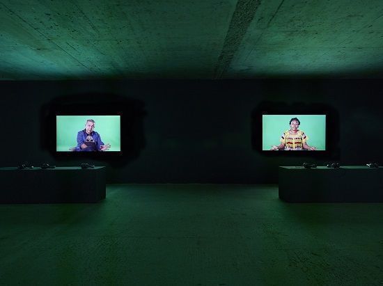 Breitz calls out attention to the firsthand accounts of anonymous refugees, persons who typically remain nameless and faceless, juxtaposing them to the universal allure of celebrities. In the first space of the installation, audiences watch an accessible ‘drama’ performed by two Hollywood stars, Julianne Moore and Alec Baldwin, re-enacting excerpts from the interviews of six refugees. The fast-paced montage strips the intimate testimonies of their depth, complexity and nuances, turning them into a facile, mainstream product meant for popular consumption.
