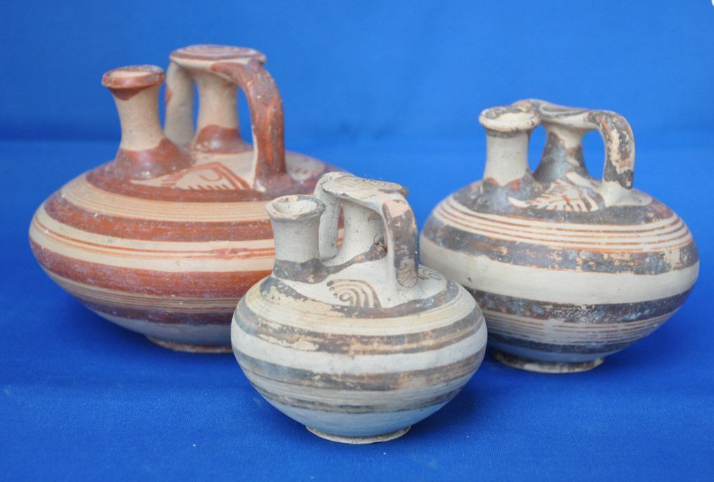 Stirrup amphorae from the tomb that preserved its chamber roof, circa 1400-1300 BC (photo: Ephorate of Antiquities of Corinth)