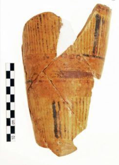 Besides the multitude of vessels found throughout the site, discoveries included a hallway with pillars leading to a possible throne room. The remains of a seat were unearthed in the latter room, with uses from earlier periods recorded as well (Protopalatial period, 1900 BC to Mycenaean times, ca. 1400 BC).