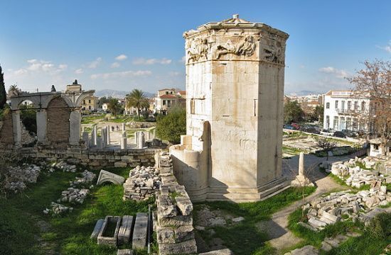 Standing just below the Athens Acropolis in the middle of the ancient Roman Agora, the Tower of the Winds was built in the 1st century BC. It is also called Αέριδες (Aerides) by the Greeks, meaning winds.