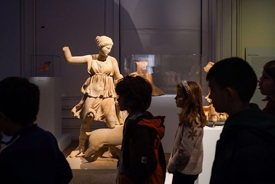 Two Sundays a month, the Museum organizes guided tours of the exhibition specially designed for parents with children 9-12 years old. Families tour the exhibition and learn about unknown stories of women from the Cyclades. Through these stories, they understand the role of women in the Cyclades in both private and public life over the years. How did they go from being goddesses of nature and motherhood in prehistoric times to protectors of the sea and sailors? What positions did Cycladic women hold in the Hellenistic and Roman periods? What was their role in shaping the modern Greek state and what was their contribution to the Revolution? Selected exhibits provide answers to the above questions, while participants can ask their own questions about the roles women had on the Cyclades islands.