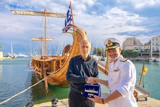 The Mayor of Piraeus, Yiannis Moralis, welcomed yesterday the Navy trireme “Olympias”, the only faithful functional replica of the Athenian trireme of the 5th century BC, the Governor of “AVEROF”, Admiral HM Vasilios Asimakopoulos, and the Lieutenant Commander HM of the trireme, Emmanuel Zorba.