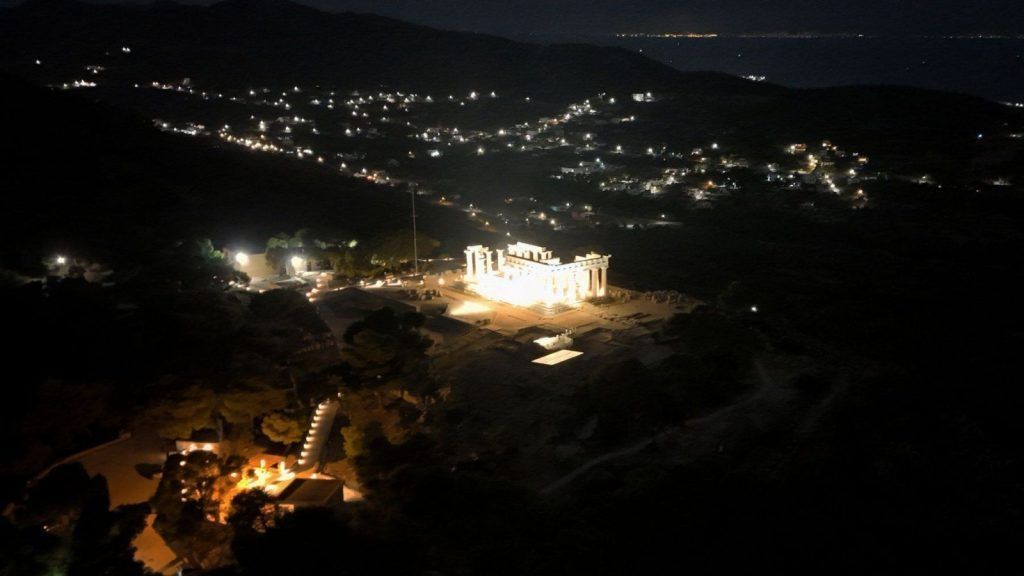 The study was prepared by the Ephorate of Antiquities of Piraeus and the Islands, commissioned by the company Eleftheria Deko & Associates. The new lighting dramatically highlights the Doric rhythm and geometric harmony of the monument, which predates the Parthenon and dominates the northeastern part of Aegina.