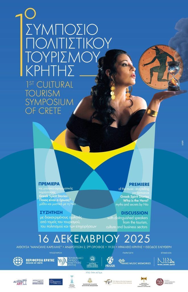 The first Cultural Tourism Symposium will take place in Heraklion on December 16, 2025, at the Karelli Hall at 7:30 pm. The Symposium aims to highlight the importance of storytelling as a cultural experience, encourage collaborations between tourism and culture, and examine the new European policy around culture-based tourism.