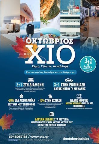 The “October in Chios” campaign aims to highlight the island of mastic and Homer as an ideal destination for autumn, combining accommodation, gastronomy and alternative activities.