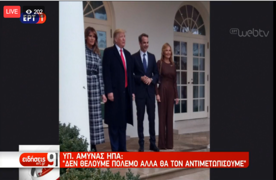 Greek Prime Minister and New Democracy leader Kyriakos Mitsotakis meets at the White House with US President Donald Trump seeking stronger support over Turkish provocations in the Aegean and East Mediterranean and against a deal Turkey made with Libya dividing the seas between them, claiming waters off Greek islands.