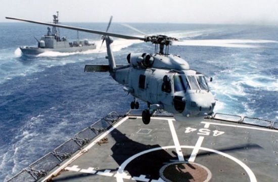 An S70B Aegean Sea Hawk helicopter of the Greek navy transferred a patient in danger to the Helipad of Marathon in Attica, after an urgent signal by the Unified Coordination Centre for Search and Rescue.