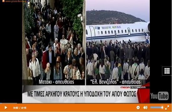 The Holy Fire arrived at the Athens International Airport at 19.30 and was received with honours of a state leader during a special ceremony. The Holy Fire was lit earlier in Jerusalem where the an official Greek governmental delegation received it and boarded on the Prime Ministerial airplane and flown back to Athens. The first stop from the airport will be the Church of Metochi in the Plaka district in downtown Athens, before The Light will be transported all Orthodox Christian Metropolis across the country.