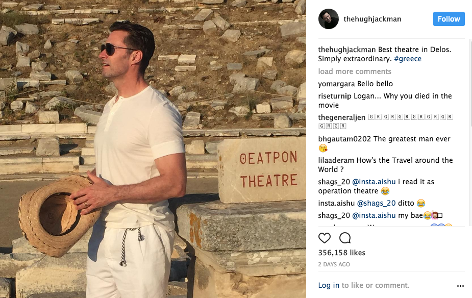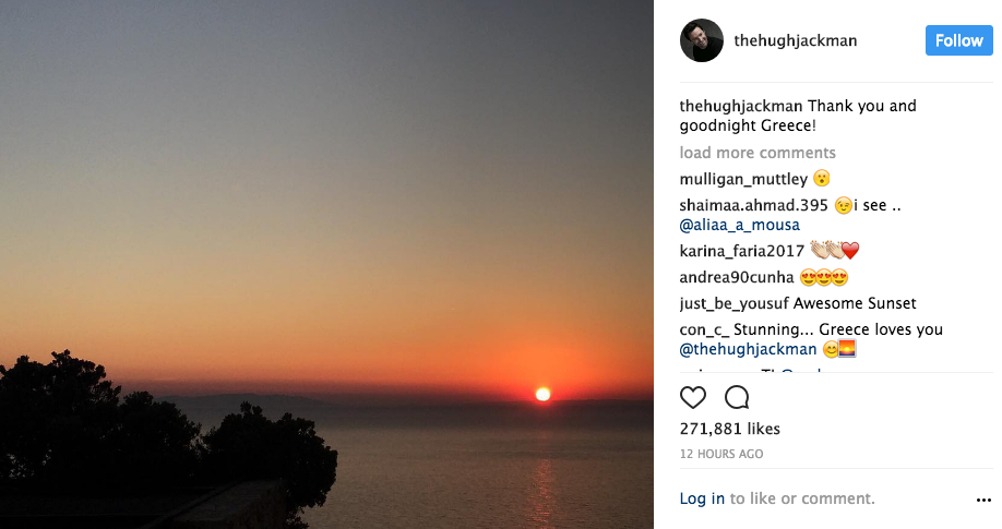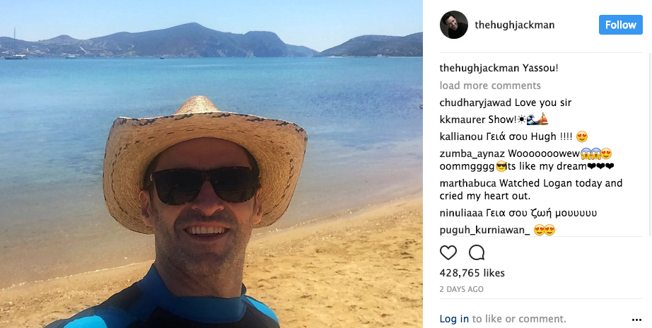 “Yassou” (Hello) wrote Aussie Hollywood superstar Hugh Jack Jackman in a selfie from his Greek holidays he shared with his 13.3 million Instagram followers.