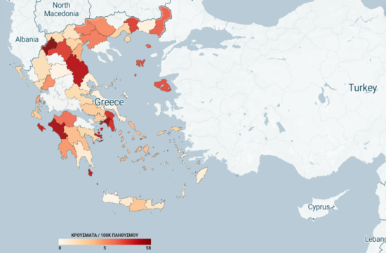 The Hellenic National Public Health Organisation (EODY) announced 1,152 confirmed Covid-19 cases on Monday, of which 96 are associated with known outbreaks and 33 were detected following checks at the country’s borders. The total number of cases is 42,080, of which 54.9% are men, protothema.gr reports.