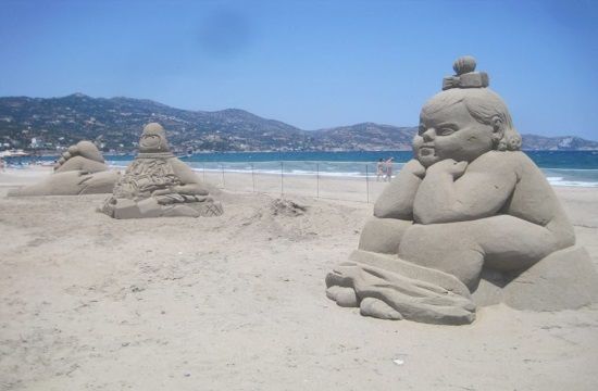 The festival, which is the only one in Greece that features sand sculpture professionals, with artworks up to three meters high, comes to an end on Tuesday but the sculptures, if everything goes well, will stay on the beach of Ammoudara until the end of the summer, or until they are torn down and swept away by the waves or possibly a storm.