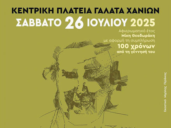 The next stop of the Festival organized by the Region of Crete is Galatas in Chania, the birthplace and final resting place of Mikis Theodorakis.