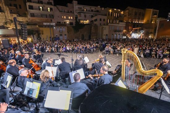 Thousands of citizens and visitors of Crete flooded the Venetian port of Chania and the Venetian port of Heraklion for two consecutive concerts, warmly applauding the musicians of the Athens State Orchestra (ASO). The concerts were dedicated to Mikis Theodorakis, in the context of the dedicated year for the 100th anniversary of his birth and were the epilogue for this year of the successful institution of the Crete Festival of the Region.