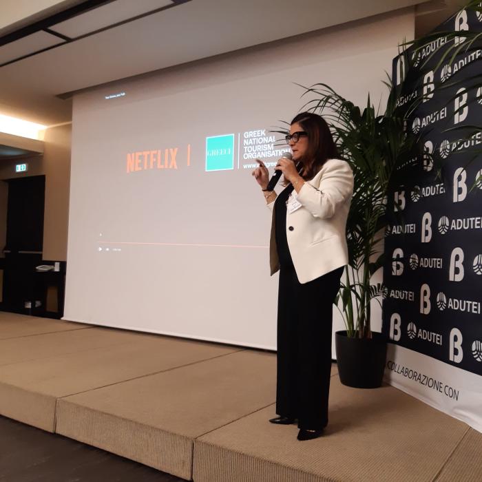 The head of the Greek National Tourism Organization of Italy, K. Boulasidou, addresses the ADUTEI Media Workshop.