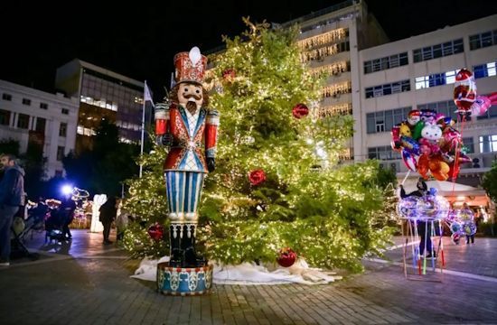 In the heart of Piraeus, the Municipal Theatre stands out as one of the most characteristic points of festive decoration. Its classical architecture, with marble columns and imposing fa?ades, becomes even more striking when illuminated by thousands of lights. The square in front of the theater fills with people.