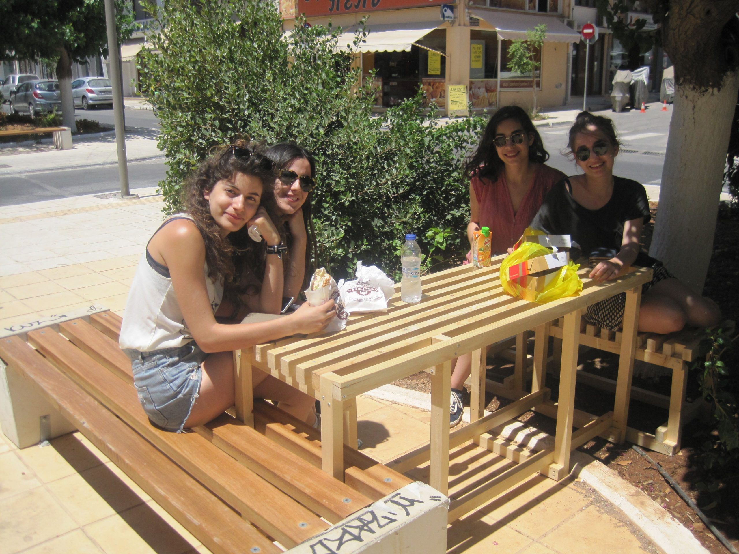 Italian Architects Nasrin Mohiti Asli and Margherita Manfra of Orizzontale led ECOWEEK workshop W1 in Agios Nikolaos. Their previous participation in ECOWEEK was in Rome in 2012, where they co-led an intervention in the urban park Valle Aurelia in Rome, Italy [more]. Their project location was the Municipal Park (Parko Dimarxeiou) adjacent to the Municipality. Their aim was to activate public space, giving an identity to the Municipal park, so that the local community can use the park in a different way.